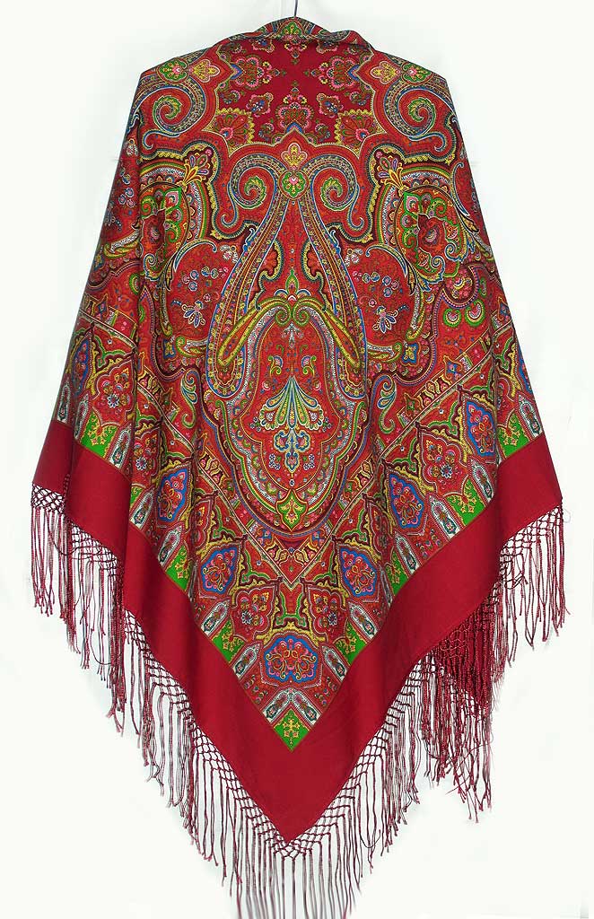 О красных Медальонах. Фон платка такой, как в книге. И цвет всех цветков, веточек и прочего. Но, "что-то с памятью моей" - упорно помнится, что и внутри медальонов фон тоже красный. Хотя, такое вряд ли может быть. Или может?