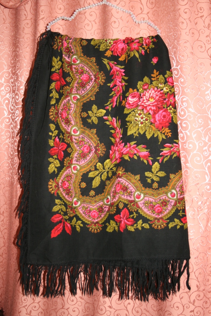 Пожалуйста, помогите опознать старую шаль, которая у меня имеется. Она шерстяная, бахрома тоже из шерстяных нитей, просновок нет. Знаю, что старая, и это, наверное, все, что я о ней знаю. Приобрела у бабушки из Беларуссии. Буду очень признательна всем, кто поможет определить, Павлопосадский ли это платок. И еще. Подскажите, что мне с ней делать? Носить платки люблю и сама некоторой коллекцией владею, но это не мои цвета и к тому же пр носке видно, что платок "в возрасте", хотя и в замечательной форме. Не мой он, платок этот, я его носить не смогу. Не знаю, куда бы мне его определить.