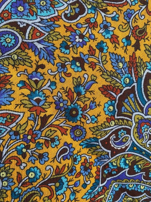 Желтый --в оттенке темного ,хорошего такого, деревенского яичного желтка. На фото иногда получается светлее и ядовитее, как будто вылезает неон, какая то "подсветка". Есть оттенки бледного хаки, желто-зеленого. Много зависит от освещения. В сумерках платок темный.