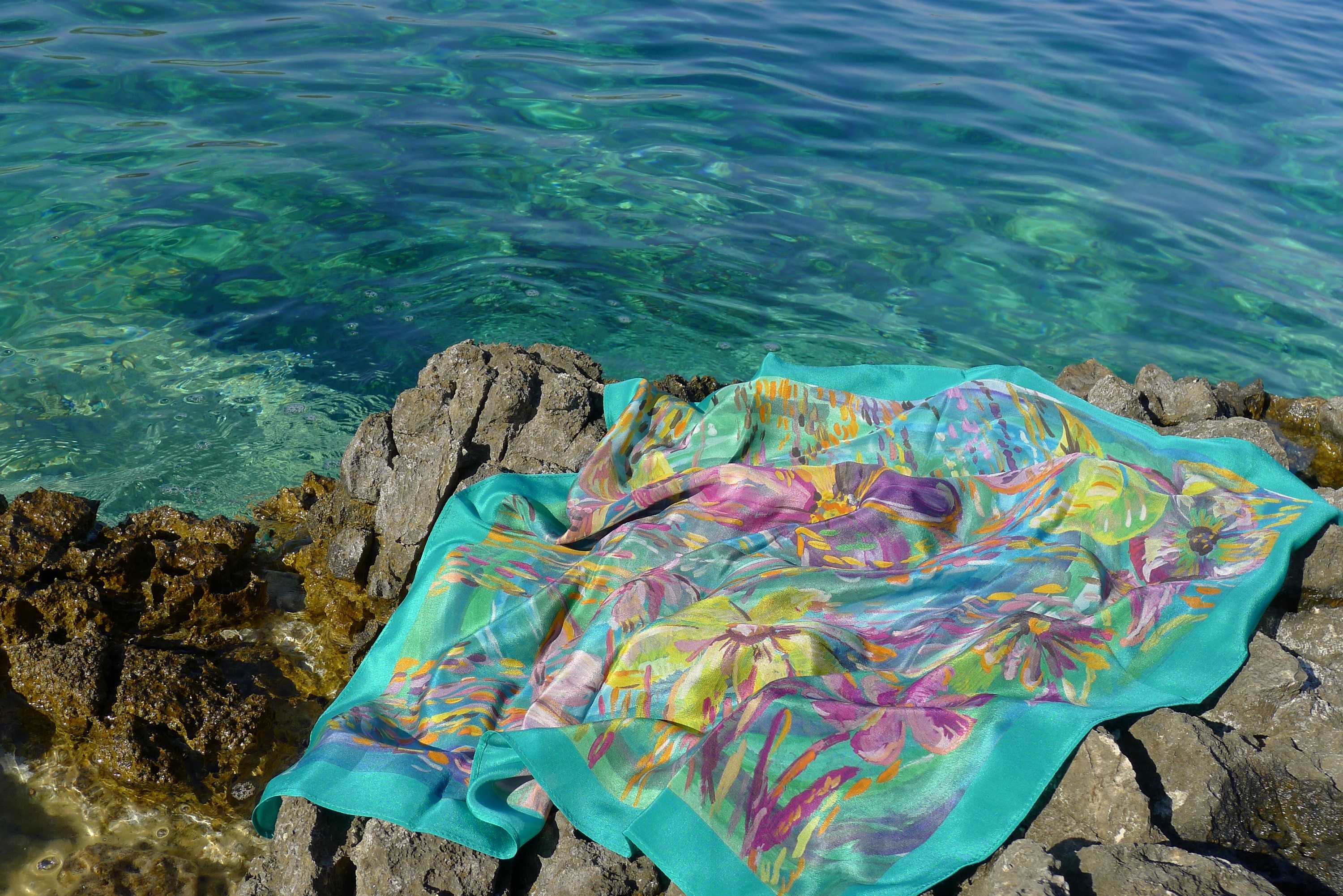 Красавец! На Вашых фото платок просто шыкарно смотритса на фоне бирюзового цвета моря!