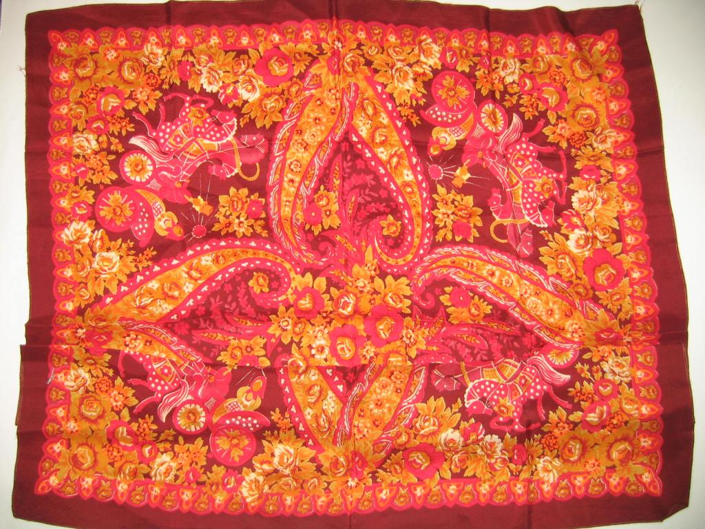 а рисунок интересный!Натик писал(а):У меня такой же вопрос, может ли этот платок быть Павловопосадским. Это шелк, примерно 95х95, бахрома шелковая, где-то начало или середина шестидесятых годов.