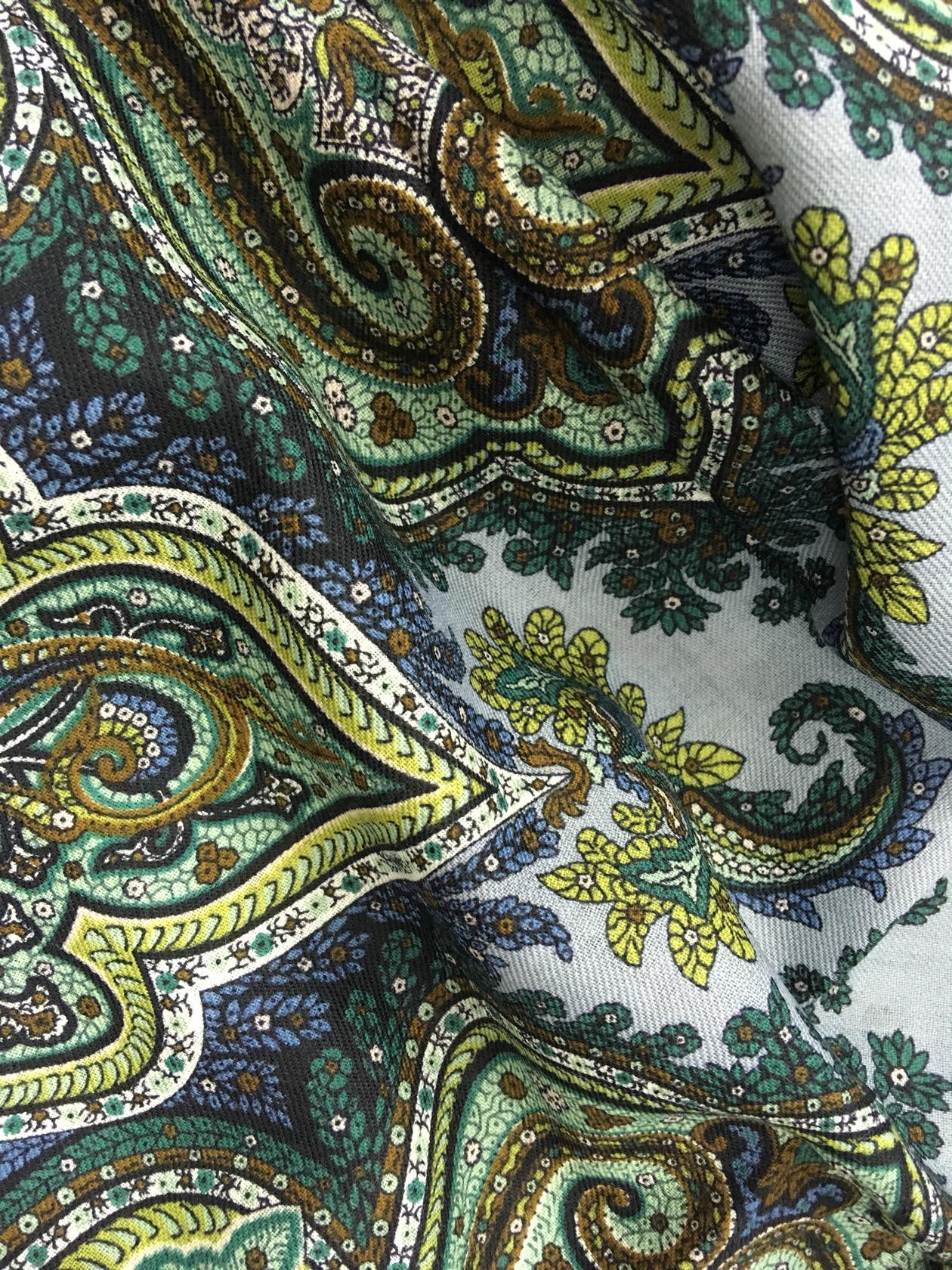 по моим ощущениям ткань очень приятная, мягкая пластичная и, что очень важно - кайма совершенно не "полосатит"....Во всяком случае на том экземпляре, что видела я - печать очень хорошая.