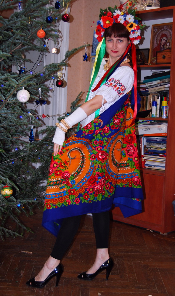Селена, а какой у Вас колорит "Руси"? Я месяца полтора назад приобрела в распродаже "Русь"939-13. Изначально брала чтобы сделать из нее сумку. У шали очень активный и специфический колорит, и мне не очень нравился синий фон, вернее сам оттенок синего. Но нравились очень красивые медальоны оранжевые с розами. А через пару дней поняла, что не смогу я порезать шаль, рука не поднимется. А потом применила шаль на новогодний костюм (это была украинская народная вышиванка, с бусами, венком и т.д. ) и глядя на фото с офисной новогодней вечеринки поняла, что есть что-то в этом платке такое радостное - "как буд-то солнце из-за туч вышло"- так сказал о шали сотрудник