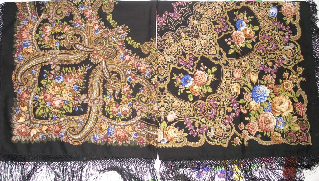И несколько фрагментов. Надо отметить, что в продаже по-прежнему платки с розовым ярлыком. Освещение на фотографиях разное - там, где платок выглядит поярче - свет искусственный ( -5 колорит).