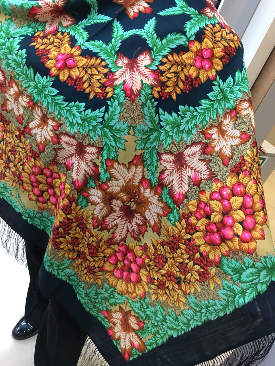 так вовремя прилетел платочек) Платок шерстяной с шелковой бахромой "День осени златой", вид 10, 146x146 см