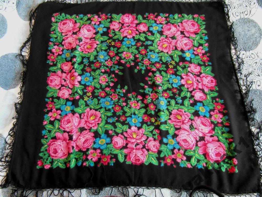 2. 95х95, черный тонкий шерстяной платок осыпкой. Со слов, ему тоже лет 15 (все платки, кроме белого, брала нагрузкой к зеленой шали, которую мне не хотели продавать отдельно):