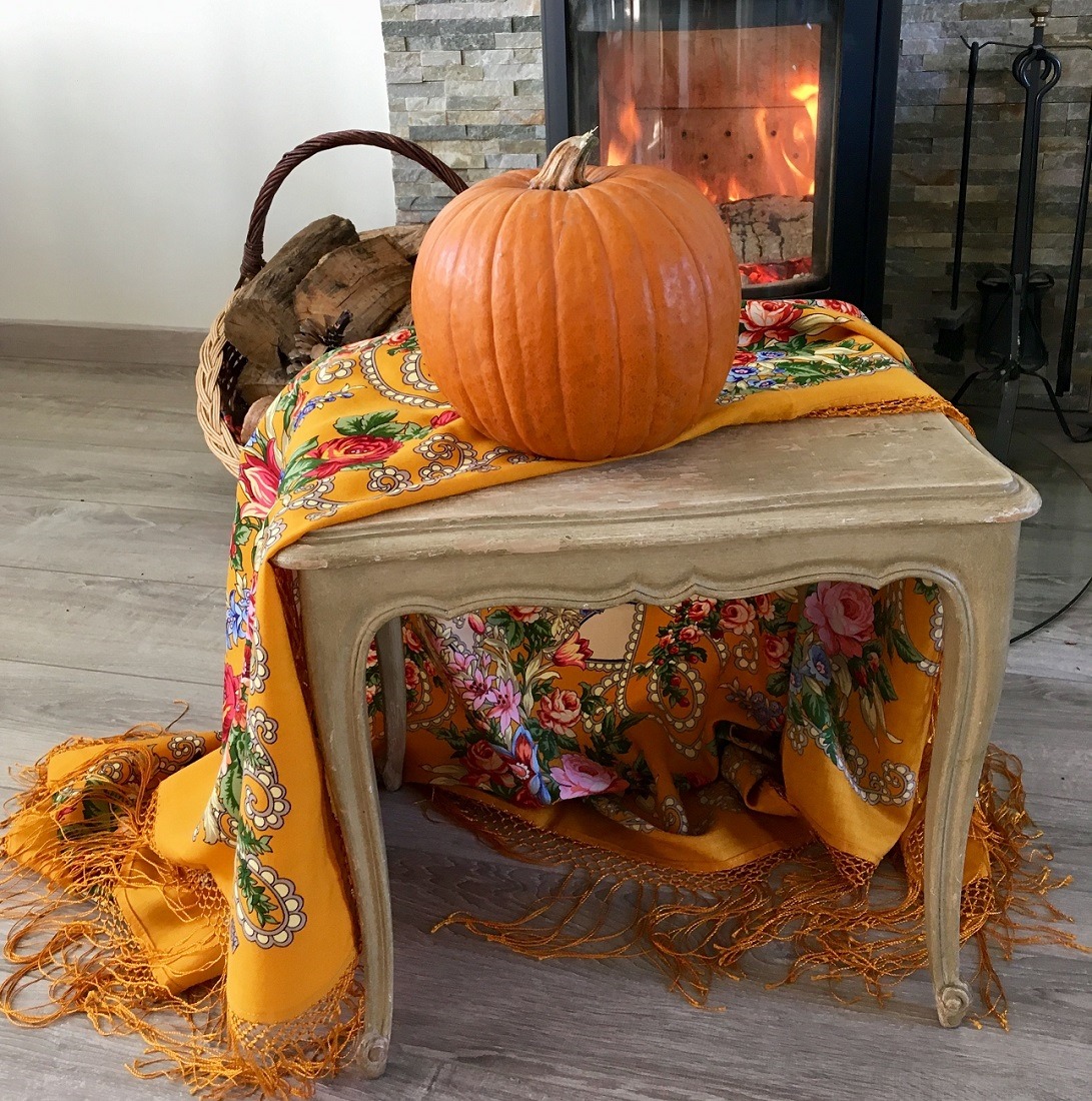 Любуюсь и палантином, и особенно "тыквенной" Азой, и Вашими жизнерадостно оранжевыми тыквочками. А венок - это настоящее произведение искусства.