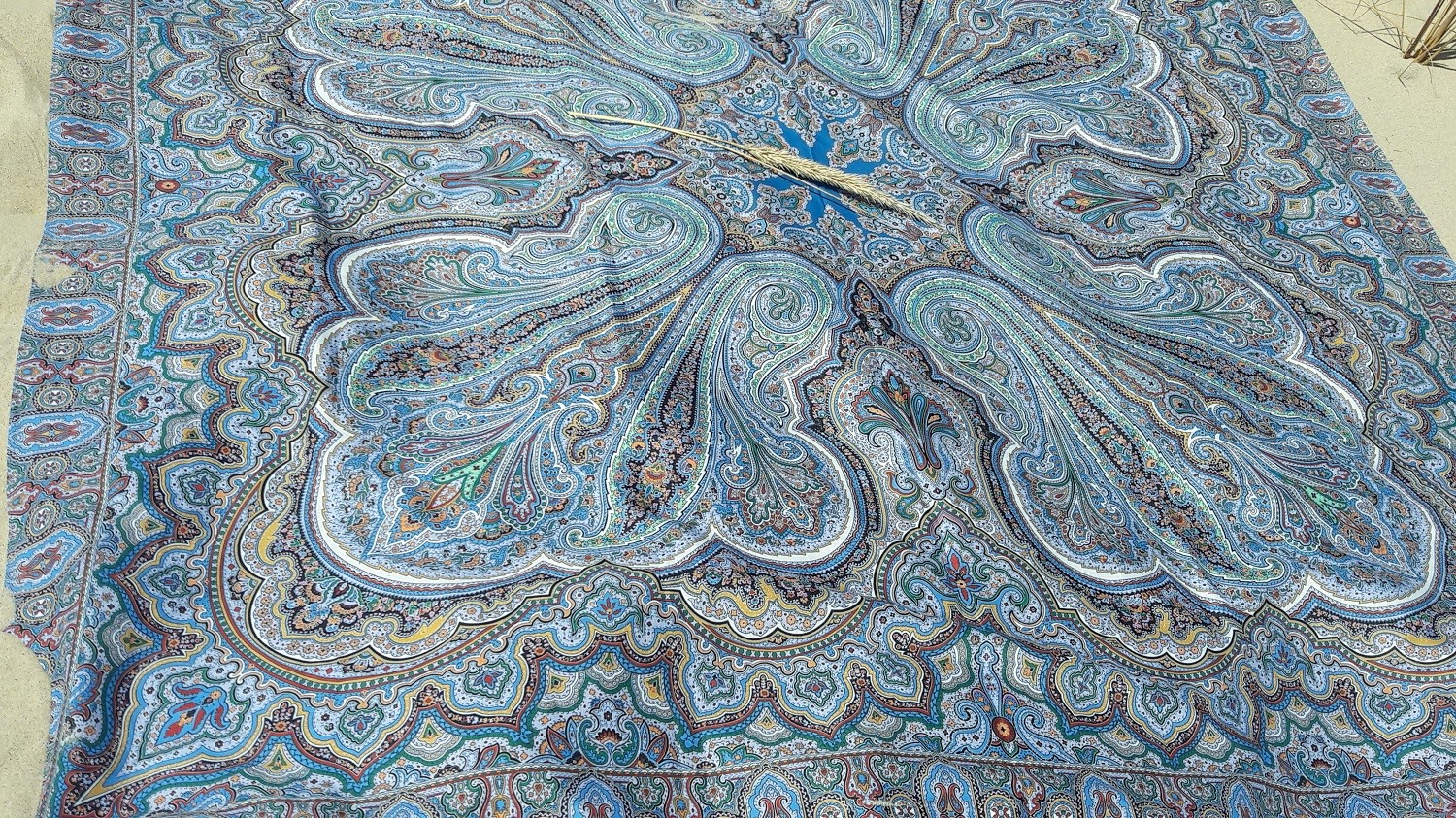 Единственная шаль с синей каймой в моей коллекции.