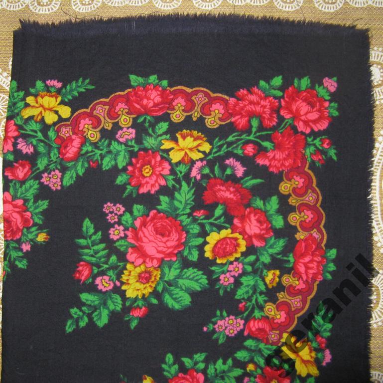 Sadaka писал(а):6. Это - не найденный мною сливочнопольный платок, по виду довольно немолодой. 95х95, тонкая шерсть, осыпка (?). Сперва мне показалось, что платок "подрезали" по периметру: