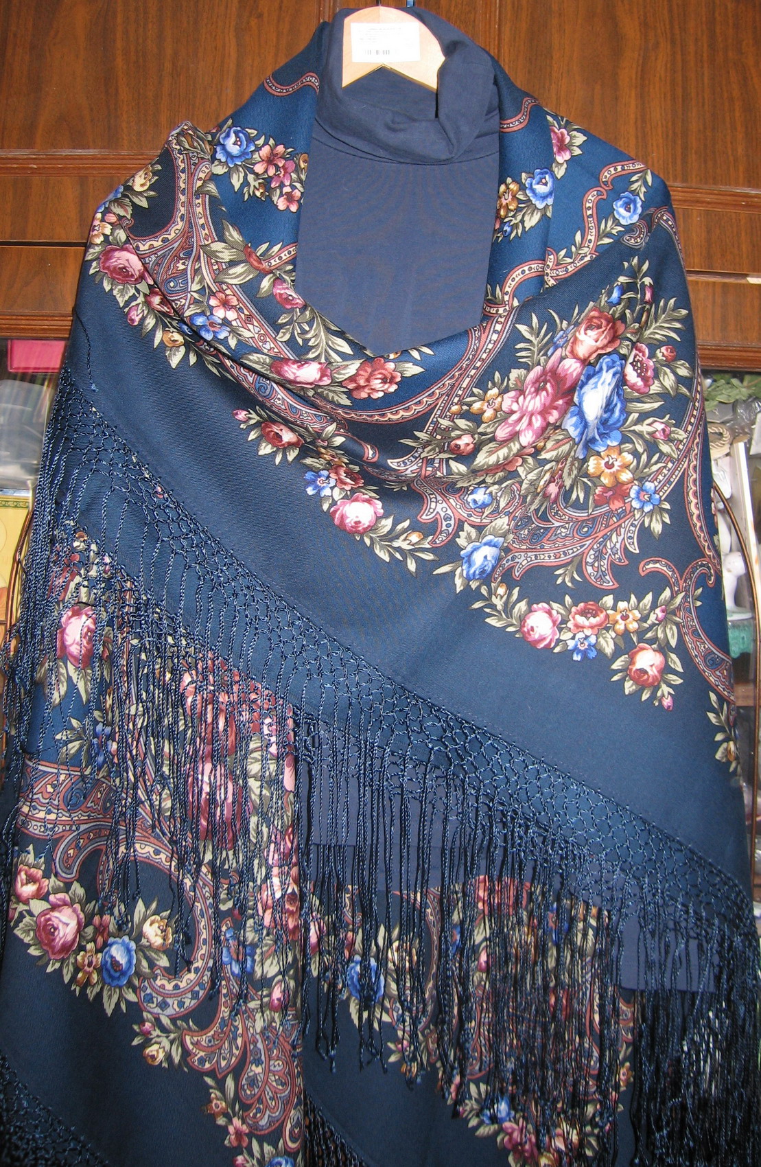 Холодного без желтизны темно-красного цвета (брусники или клюквы) орнаментальную шаль.