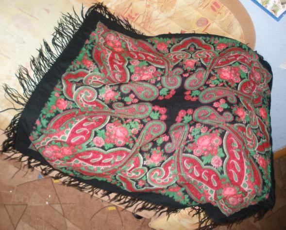Есть еще пример хорошего качества платочка – это Вечерок-4, моей любимой Художницы – Клары Сергеевны Зиновьевой. Покупала я его в 2014 году, в сувенирной лавке, дороже на 300 руб., чем в инет магазине. Выбор платков был, но взгляд остановился именно на нём. Продавец была удивлена моему выбору и так промолвила..примерно.. «домашний, вечером пойдёт».