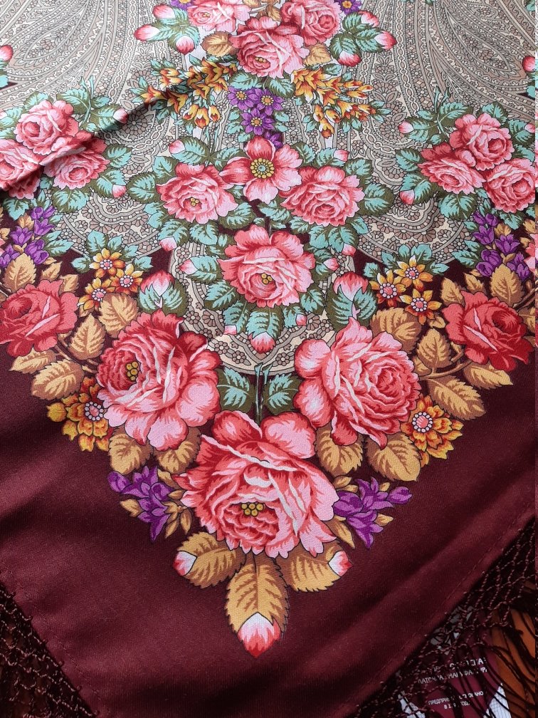 На рисунке этой шали (во всех колоритах), конечно очень эффектно смотрится уходящие в пенную кромку из роз, орнаментальные элементы.