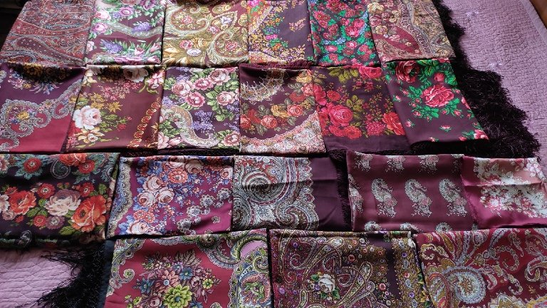 У меня отдельно яркий фольклор. Отдельно орнамент. Отдельно Счастливицы))))) И Караваны.))) Остальные в странном, интуитивно понятном мне, причудливом порядке. Будем так считать. Из которого постоянно куда-то норовят откочевать Подмосковные вечера 17, шаль-беглянка.