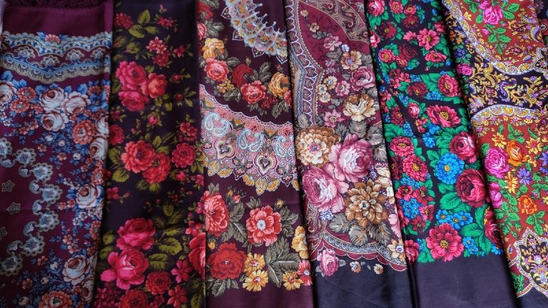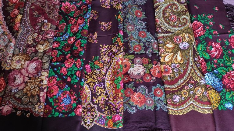 Виктория, очень многоцветные платки. Яркие, радостные идёт один позитив!
