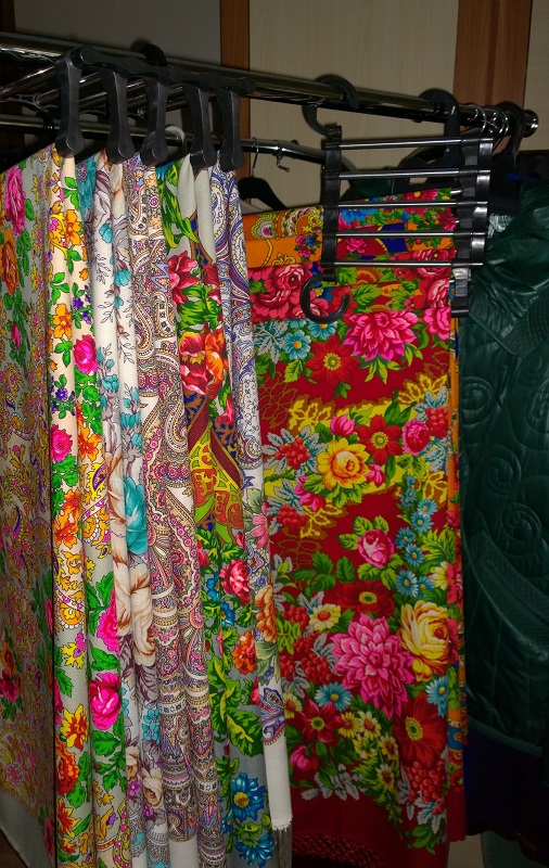 зимой планирую тащить так все на балкон, морозить коллекцию. как раз между платками есть расстояние, будет проникать воздух. и развешивать прямо на вешалке будет удобно, я думаю