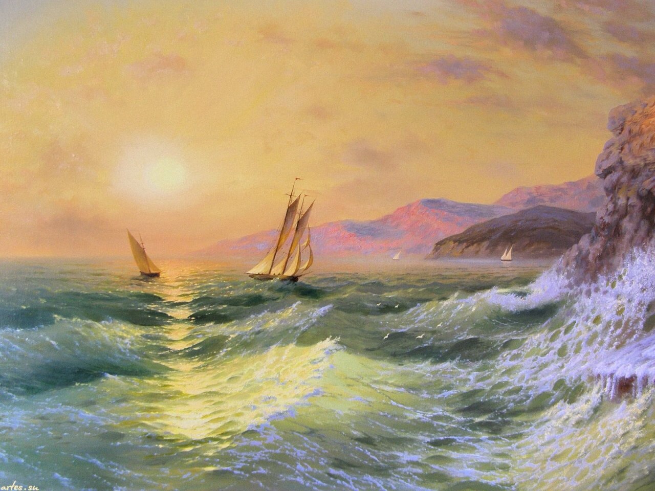 Мне новый авторский колорит платка Крым навевает этот пейзаж (позаимствован из интернета)... Утро, морская пена, кораблики.