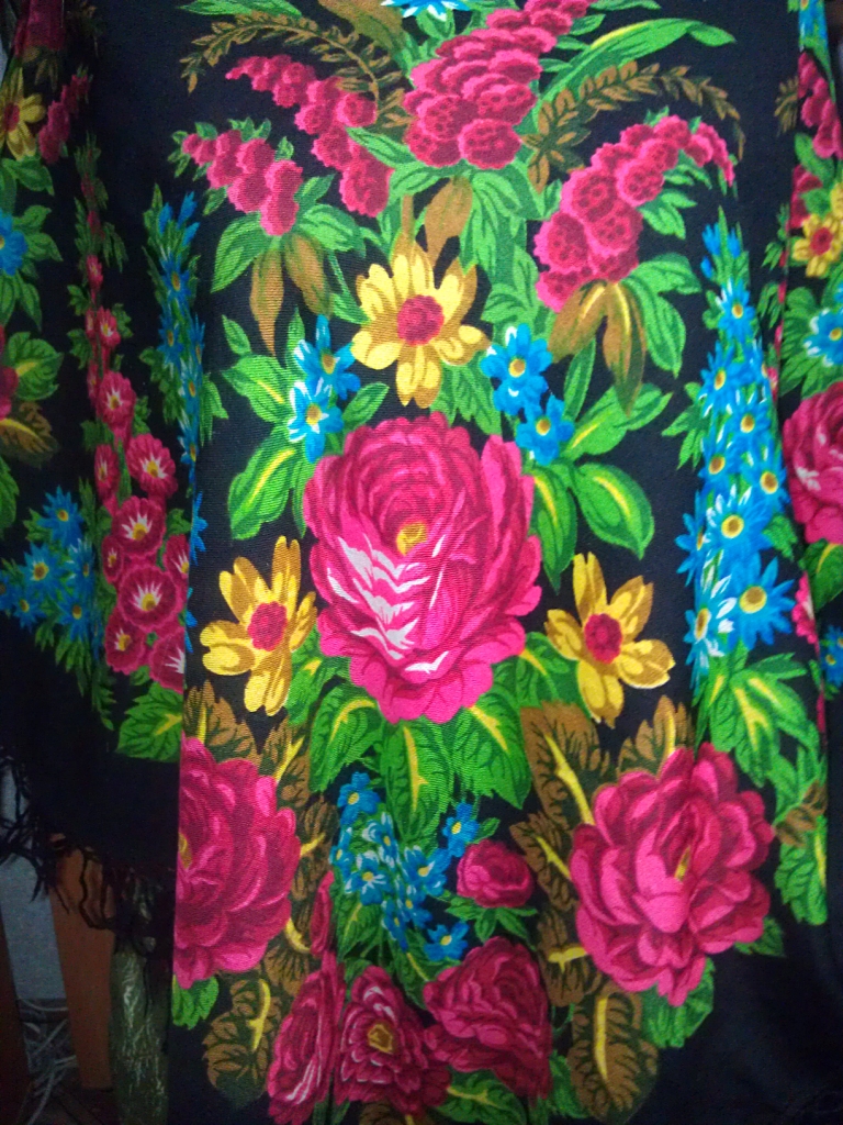 Очень красивый платок! Обалденный. Явно из старинок. Я такой старый рисунок не могу опознать. Вы правы, это какая-то версия кругового мотива. И ещё тех времён, когда рисовали маки на ножках с листиками и бутончиками и прочие всякие травинки-стебелёчки. Такие они чудесные, маки эти. А посмотрите, как интересно сделана серединка - ветки с гроздьями цветочков выходят из самого центра, с макушки.Дождинка писал(а):Марфушенька-душенька в шаль завернута, интересно в какую ( рисунок по кругу, вроде, идет)?