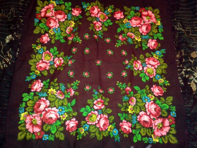 Купила платок - очень понравился, я просто ахнула, как увидела. Но не соображу, что это может быть. Он здоровенный, 146х146, наверное... Буду признательна за опознание, как всегда )
