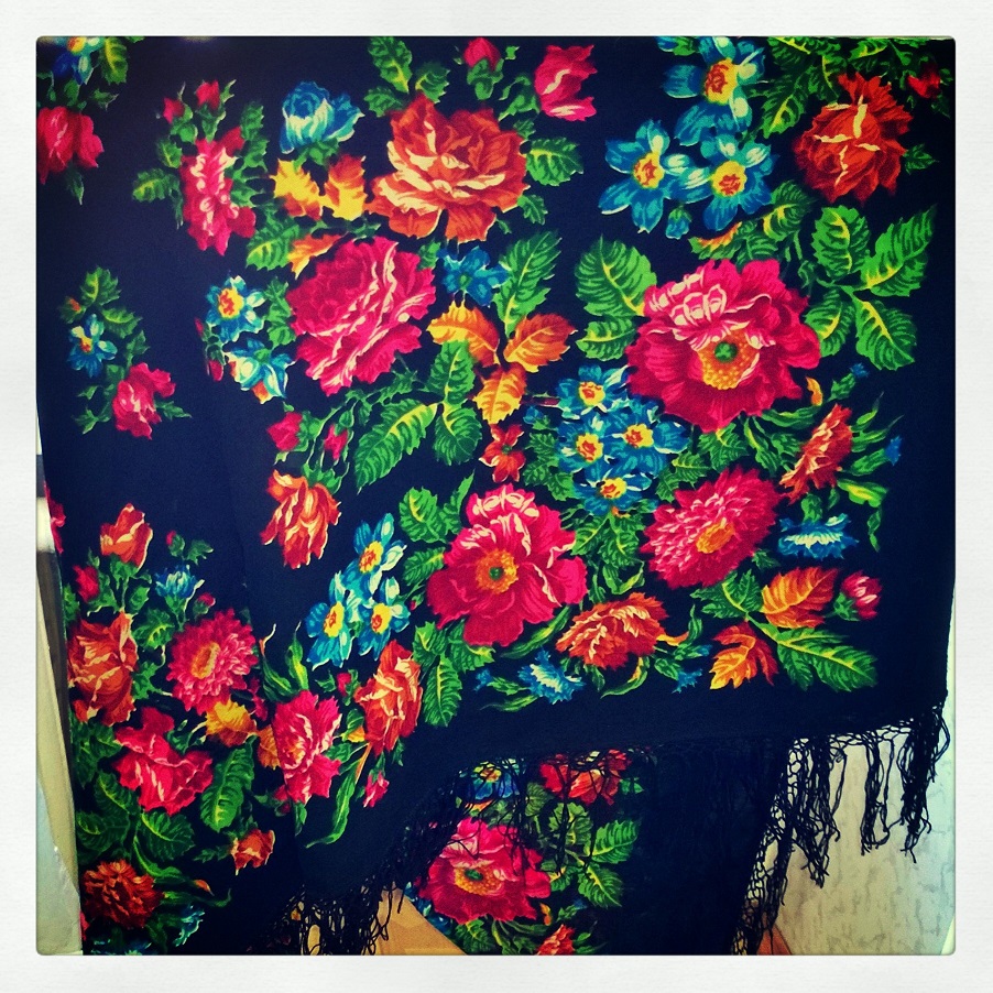 ), что говорит о его происхождении, не зависимо от художника, почему-то, точно знаешь, что это Павловопосадский платок. А этот, думаю, украинский. Не один раз его рассматривала и с каждым разом крепчает моя уверенность. Таковы мои субъективные очучения