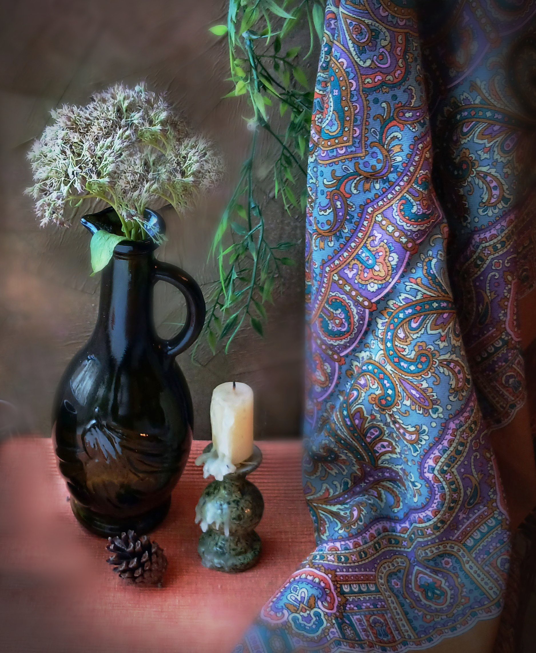 Тоже очень люблю этот платочек в 16 колорите. Красивые картинки с ним получились: и с вазой и подсвечником; и с бусами (сердолик?).