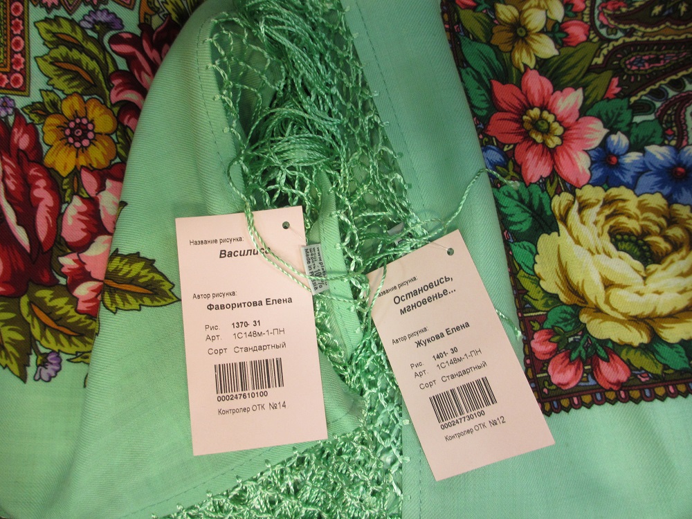И вот ещё - "Шафраны" -30 и -31. Тут, конечно, колориты отличаются разительно. Но на ярлыках -31 и -30. На ярко-зелёном - к тому же комбинированная бахрома.