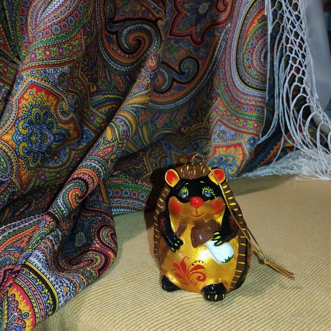 Платок "Бархатная ночь"(художник Т.Сухаревская) и клинская ёлочная игрушка