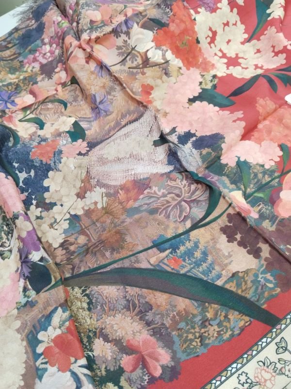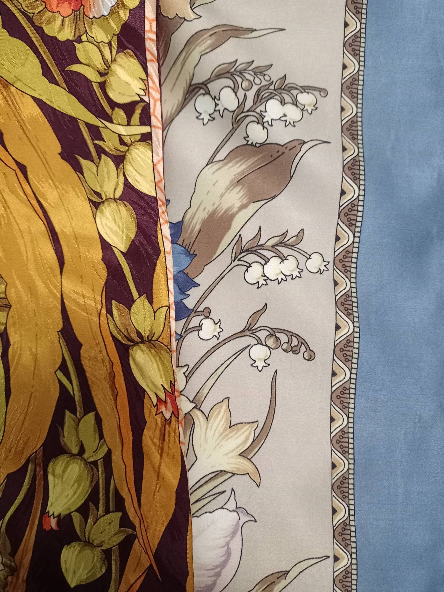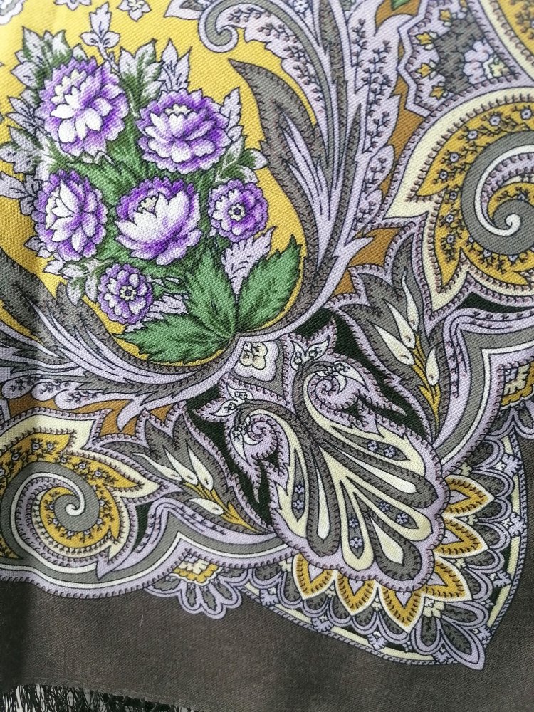 Платок розовый!!! У меня на мониторе на сайте он красный, а в жизни хороший винтажный розовый. Ложится к лицу хорошо и идет - делает меня малость посвежее.