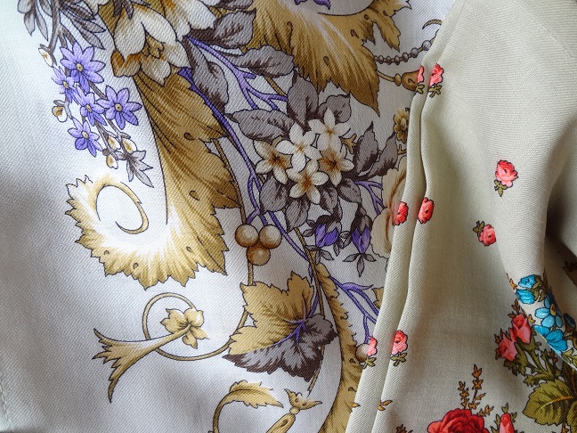 Ткань - исключительно мягкости и шелковистости. Цветы (для меня) крупноваты, но в драпировке - смотрятся хорошо.