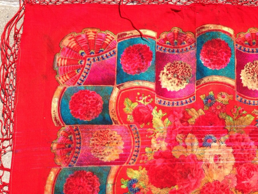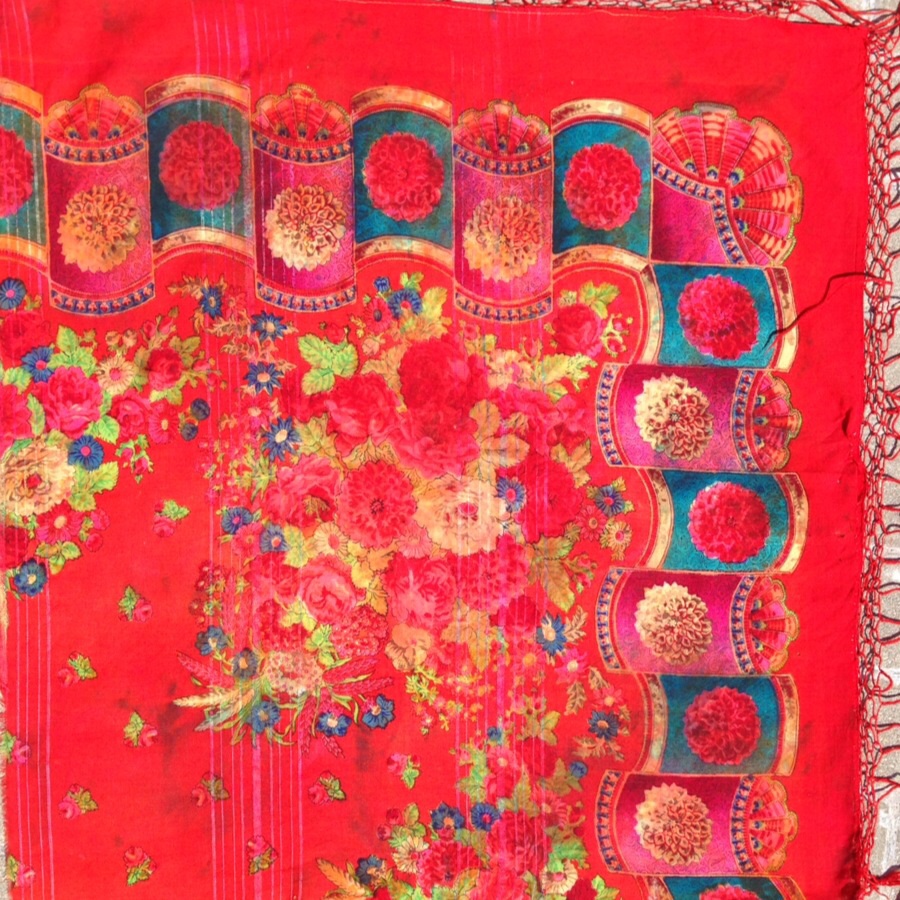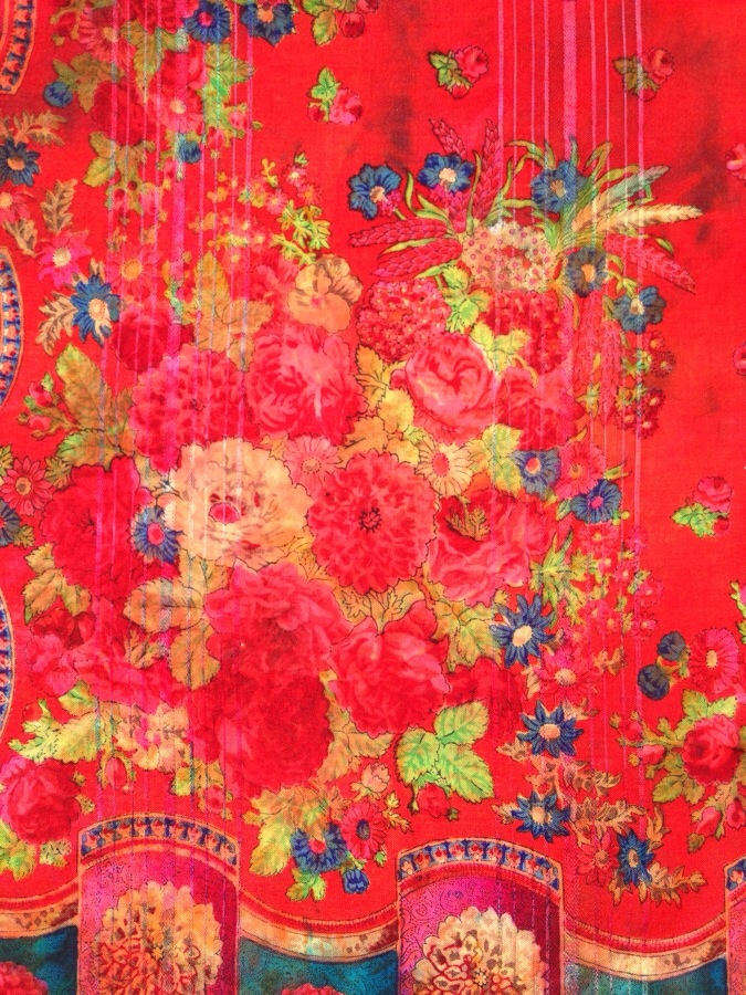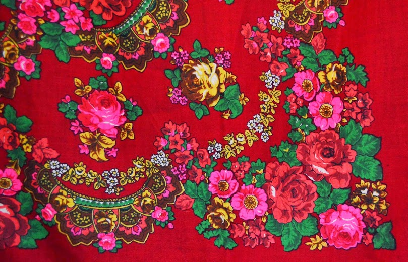 Даже не знаю - правильная ли тема. Моё первое знакомство с русскими платками состоялось лет 25 тому назад.Тогда я нечайно в то време у нас появившимся торговых пунктах одежды вторых рук откопала чудный, яркий кусок от большого платка. Тогда он мне просто ассоциировался с Россией и стало ярким акцентом в моей одежде. Ну и пусть что только 1/4, но когда я его сложила никто и не знал что это только часть. За эти годы он от меня потерпел, потом и от старшей дочки, потом она решила что это лишь тряпка и я с криком отняла его у неё, когда она писала картину красками. Но теперь, когда я познакомилась с Павлопосадскими платками, их историей, мне стало интересно что за кусочек красоты я носила в молодости. Может кто подскажет