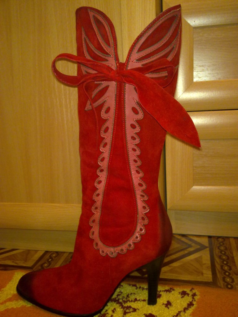 Фото сапог тоже прилагаю- они натурально красно-помидорного цвета, а носы уходят в цвет бордовый, хотя не знаю на сколько он у вас верно на экране отобразится.