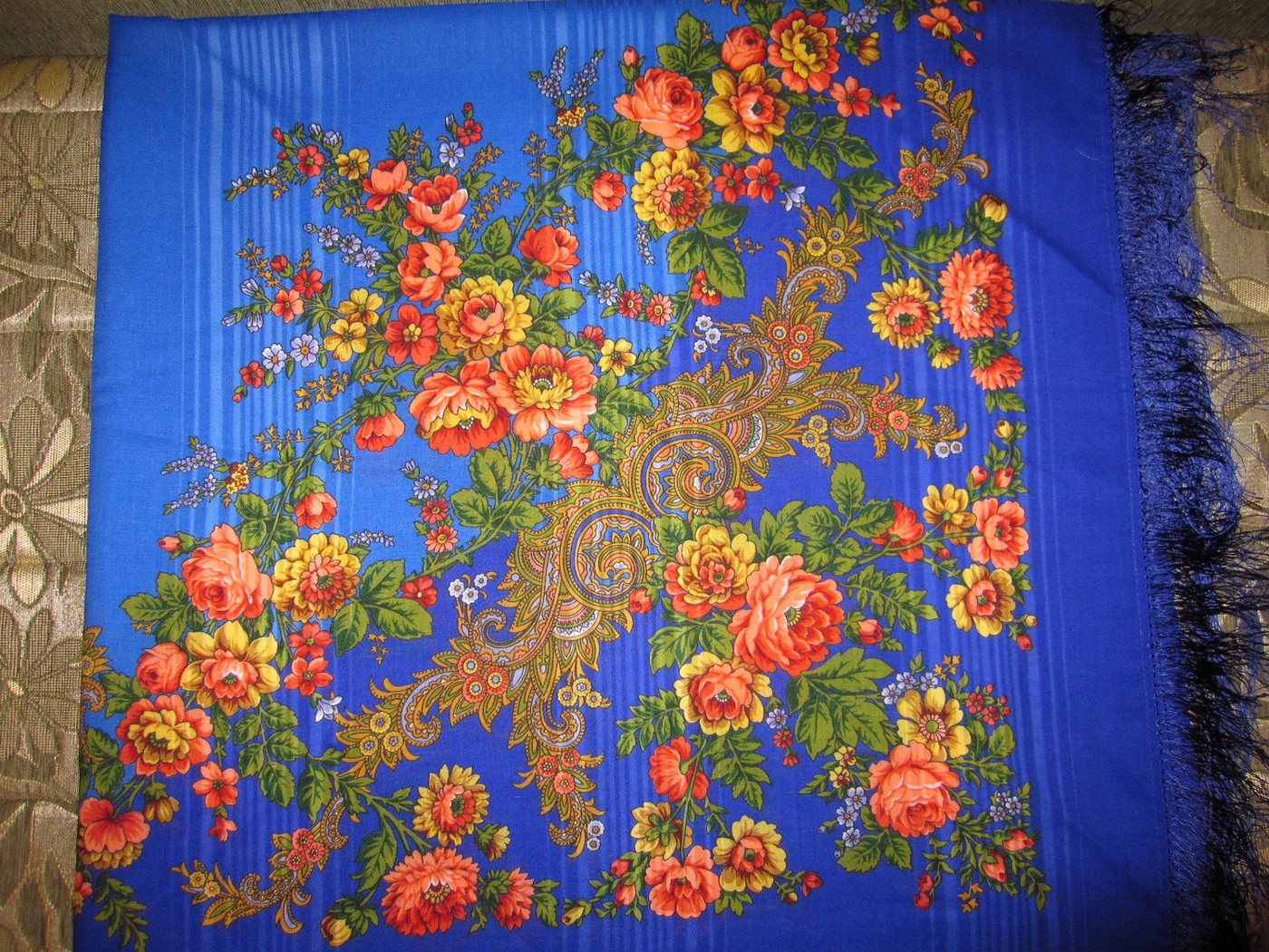 Смотрю на платок "Павловские розы" и видятся мне яблоневые сады Коломенского, узорная резьбы терема и Моква-река внизу течет голубой лентой Царствие Небесное Кларе Зиновьевой, вечная память ее мастерству...