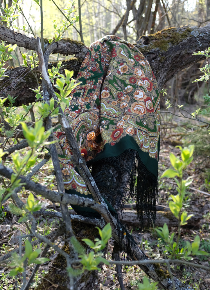 Итак, если вы хотите пройти скрытно и незаметно по майскому лесу, то накиньте шаль Посадский-10, и вас не будет видно. Лучшего "камуфляжа" не найти! Полное слияние с Природой!![]()