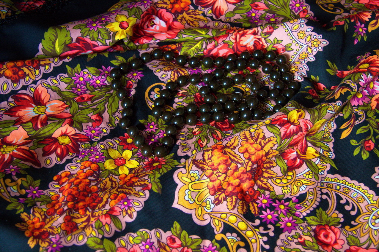 Машуня, вот Вы все-таки эстет! Фото с бусами какое классное! :Q В общем-то шали разные, по ощущениям может в чем-то перекликаются. Мне что сразу бросилось в глаза - оттенки зеленого на листиках разные.
