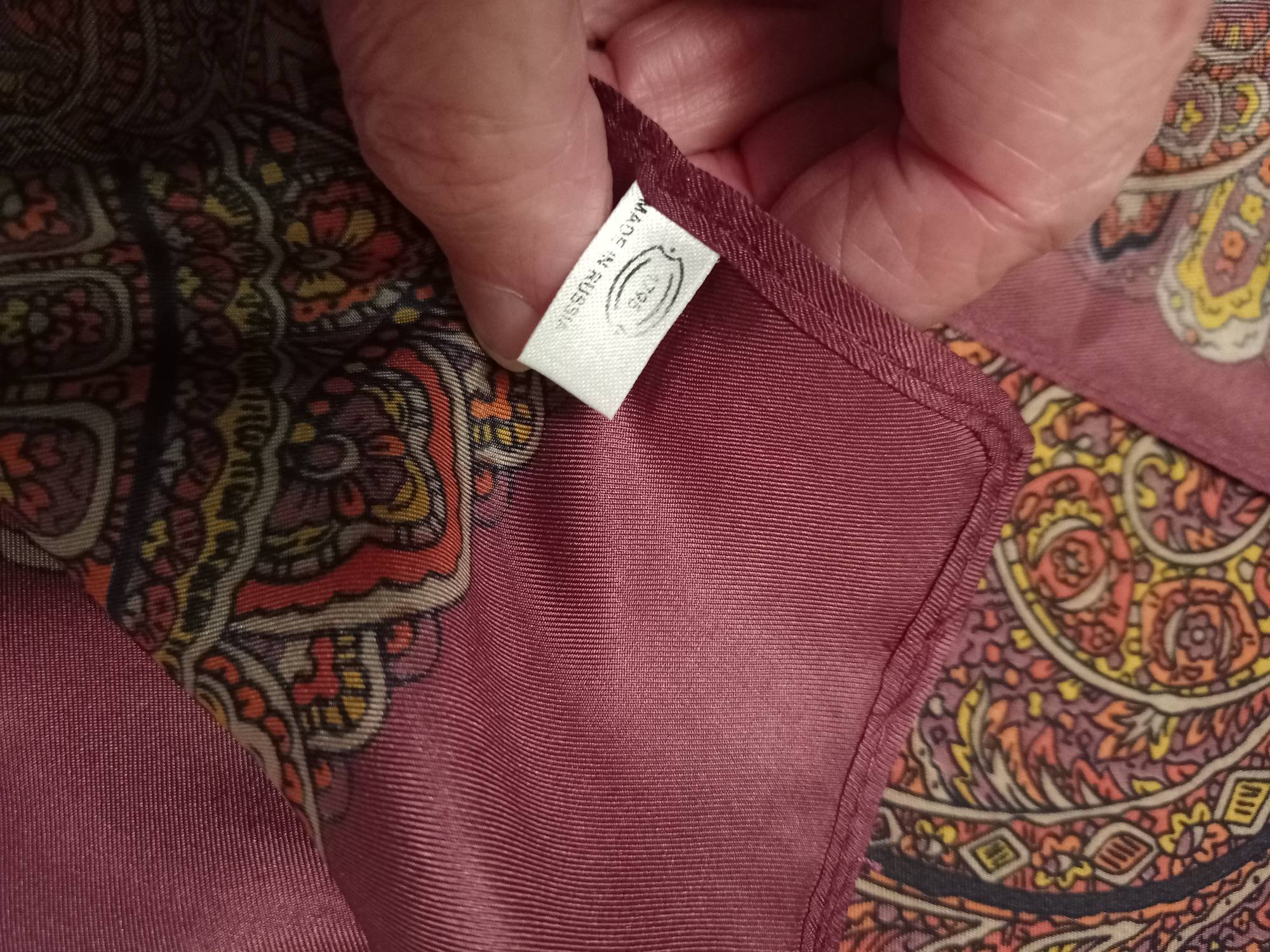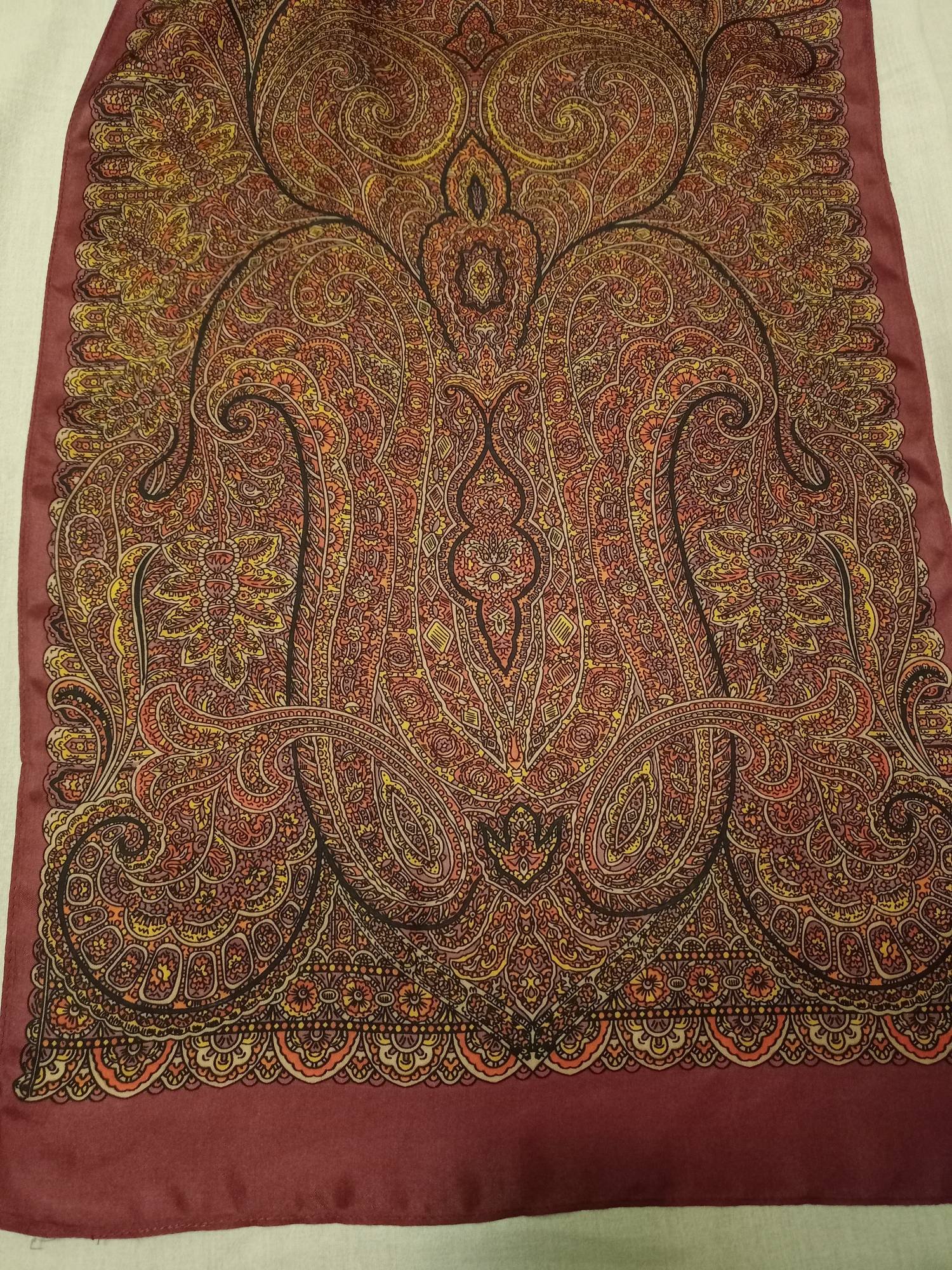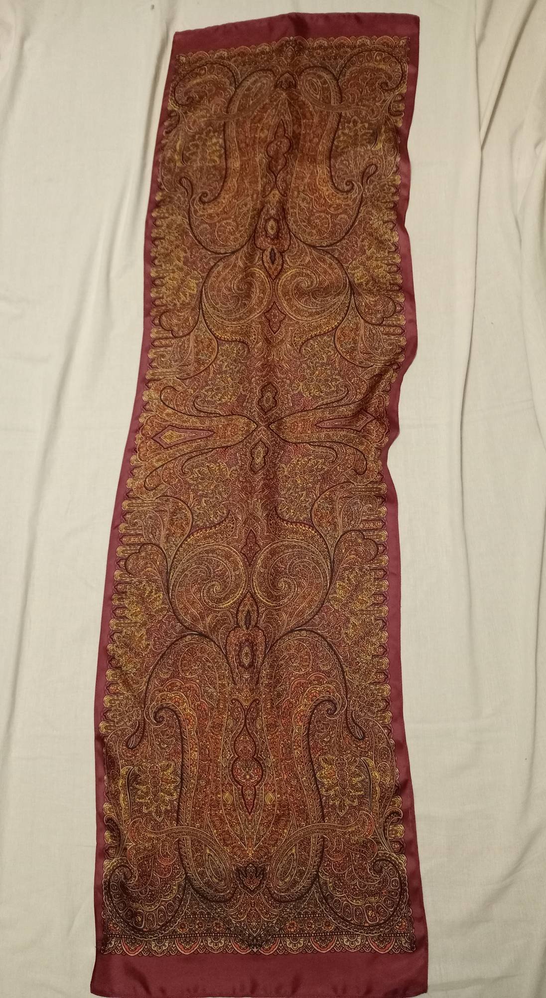 Итак, шарф Зимняя вишня Жуковой из шёлка.
