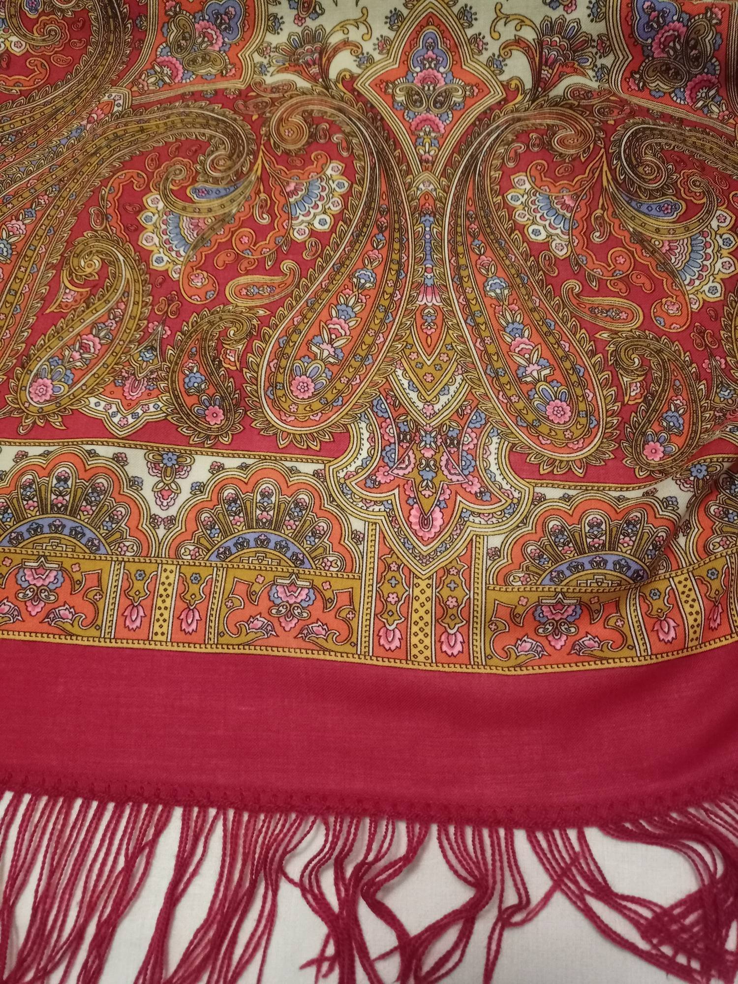 Покажу пока свою Бирюсинку с шерстяной бахромой. Колорит 5 же? Она не очень красная, если кто не видел, кайма эдакая красно-коричневая.