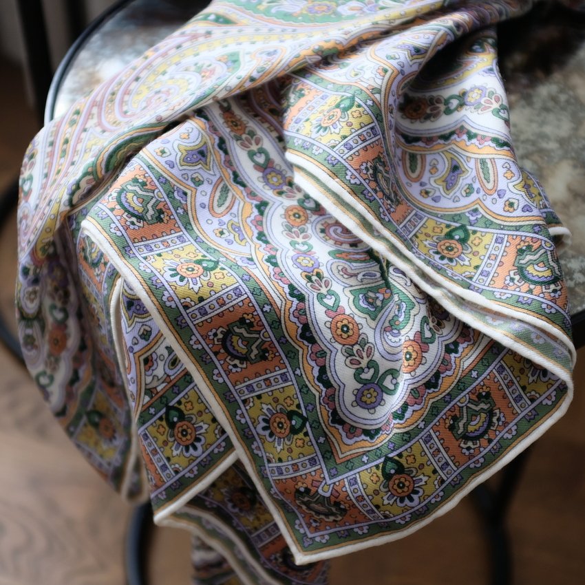 Спасибо. Да, мне так и хотелось, что бы платок заканчивался цветной каймой. В маленьком размере платка однотонная кайма мне очень мешает, потому что в скрутке только она и видна.