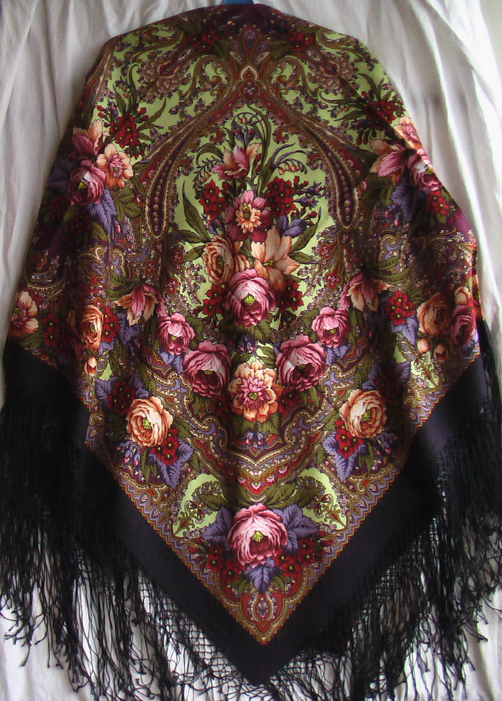 Барышни ! А я Счастливицу-16 получила ! Смотрю на неё и не нарадуюсь, красота ! :: Она у нас на форуме мало представлена. Фламентоза её владела, да Натик видела и всё. Она яркая. но не кричащая. По цветам гармоничная, но не для робких дамочек ! Я побаивалась фиолетовой каймы, но она очень и очень тёмная, во общем, то что надо. Цветы на шали в холодных тонах. Пожалуй из всех моих Счастливиц : 18, 14, 10 - эта сейчас больше всех нравится ! :: На себе пока не покажу, настроение не то для показа. Снимала на балконе в пасмурную погоду без вспышки.