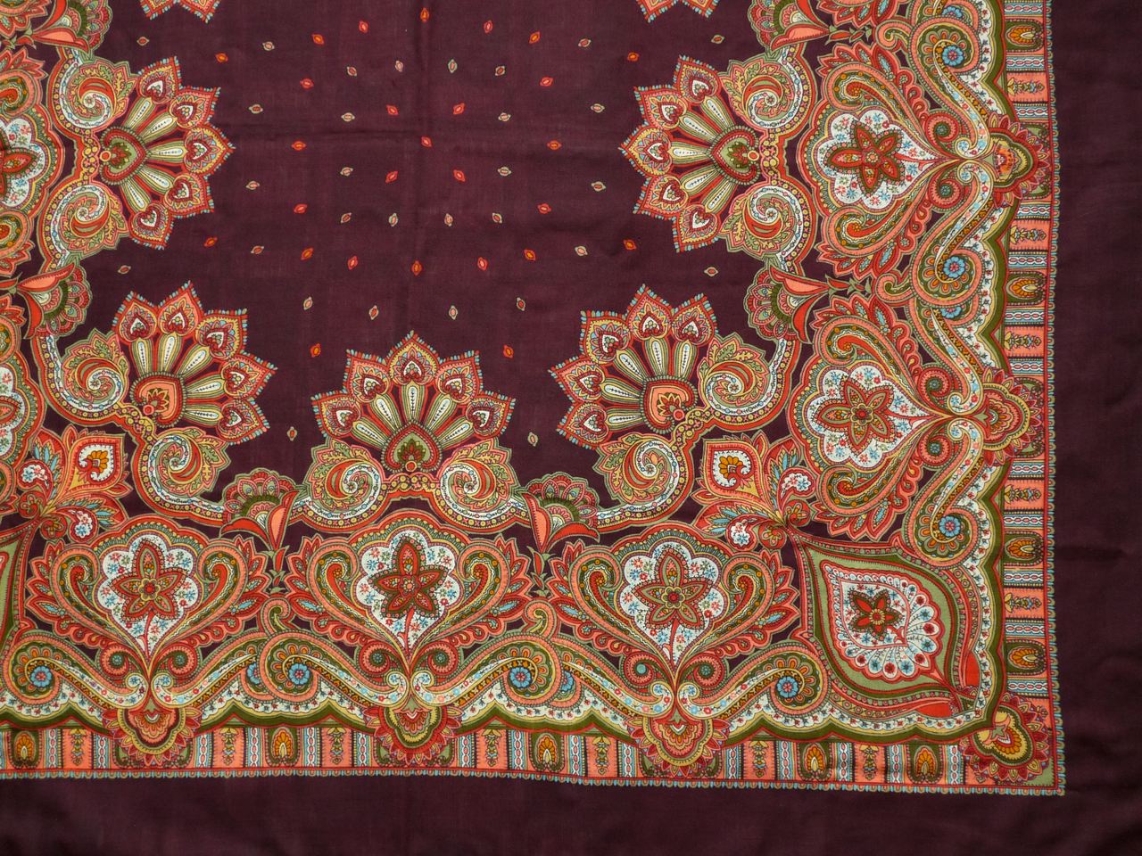 Дамы - шалелюбушки. Помогите опознать платки. Один подарила мне тетя, из-за моего увлечения платками, но точно она не знает павлопосадский ли он. Платок размером 95х95 см, фон цвета переспелой черешни, бахрома шерстянная, есть пришитая тряпочка с цифрами 27,на фото со вспышкой выглядит несколько бледней. Я не нашла его в базе, хотя может не там смотрела.