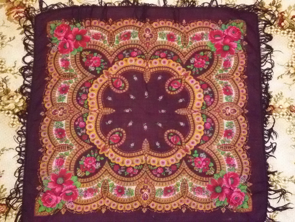 Не ругайте сильно, пожалуйста)) Облазила каталоги, но не признала этот платок. Куплен в начале 90-х.