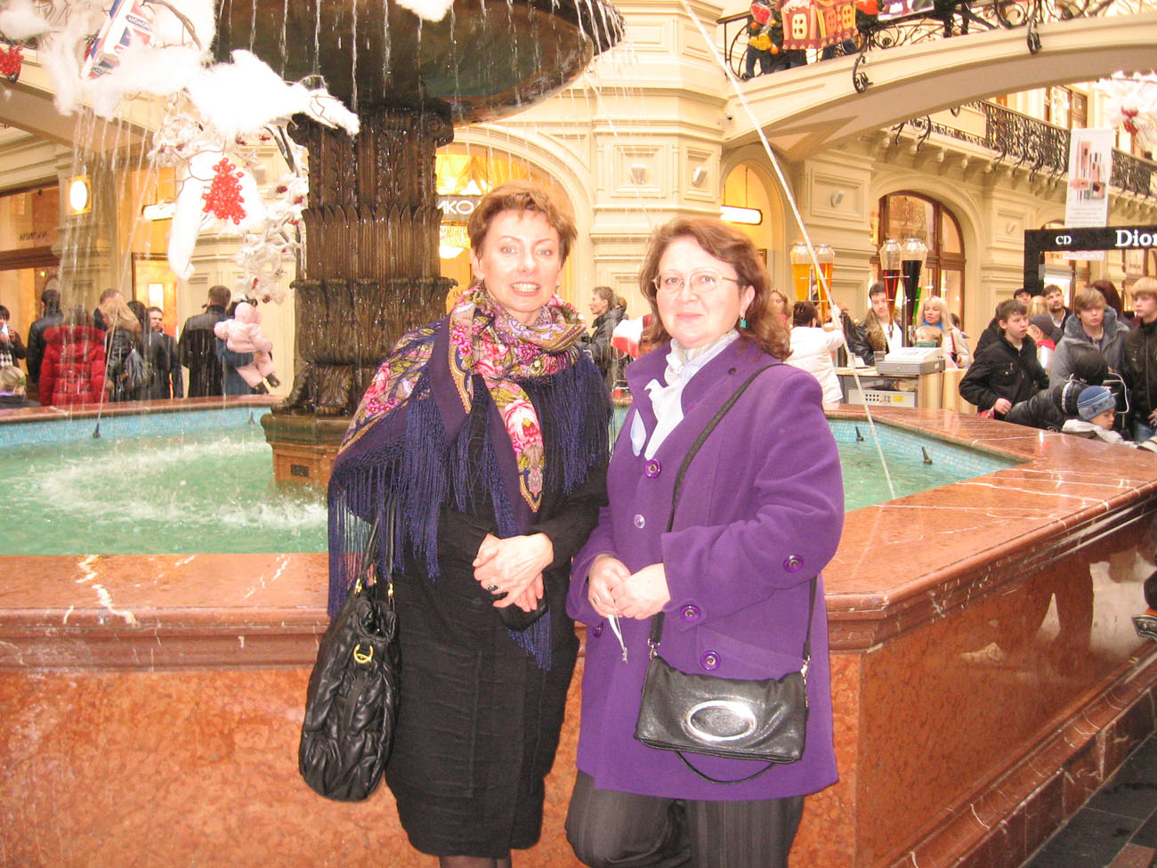 Девушки, вот фото моей шведской знакомой (рядом со мной, без платочка). Она в воскресенье уезжает. Сегодня, будучи в фирменном магазине, мы так засуетились, что ЗАБЫЛИ примерить ей "Белые розы".