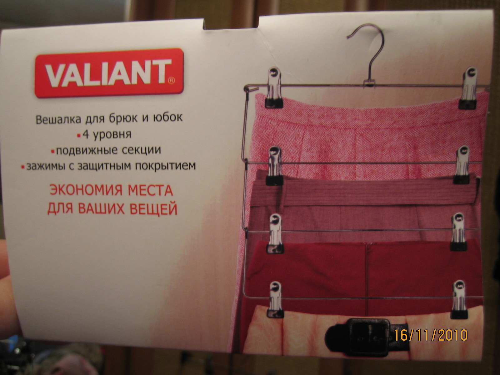 Эту тему уже давно не поднимали, да и я наткнулась на неё путём поиска. Как и для многих, встал вопрос хранения платков и шалей при ограниченном простренстве. Свободных полочек не много, на обычных вешалках платки размещаются в несколько сложений (а в шкафу места мало), коробочки тоже хранить негде, брючные вешалки не выдерживают... Но недавно в магазине наткнулась вот на такую вешалку: