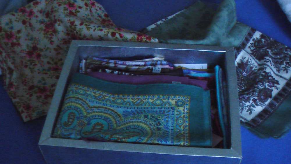 Вот мой платочный шкаф. Шёлковые платки храню в большой коробке с прозрачной крышкой. А как вы храните шёлковые платки ? Ещё бы мне хотелось обувную комнату иметь и сумочную!