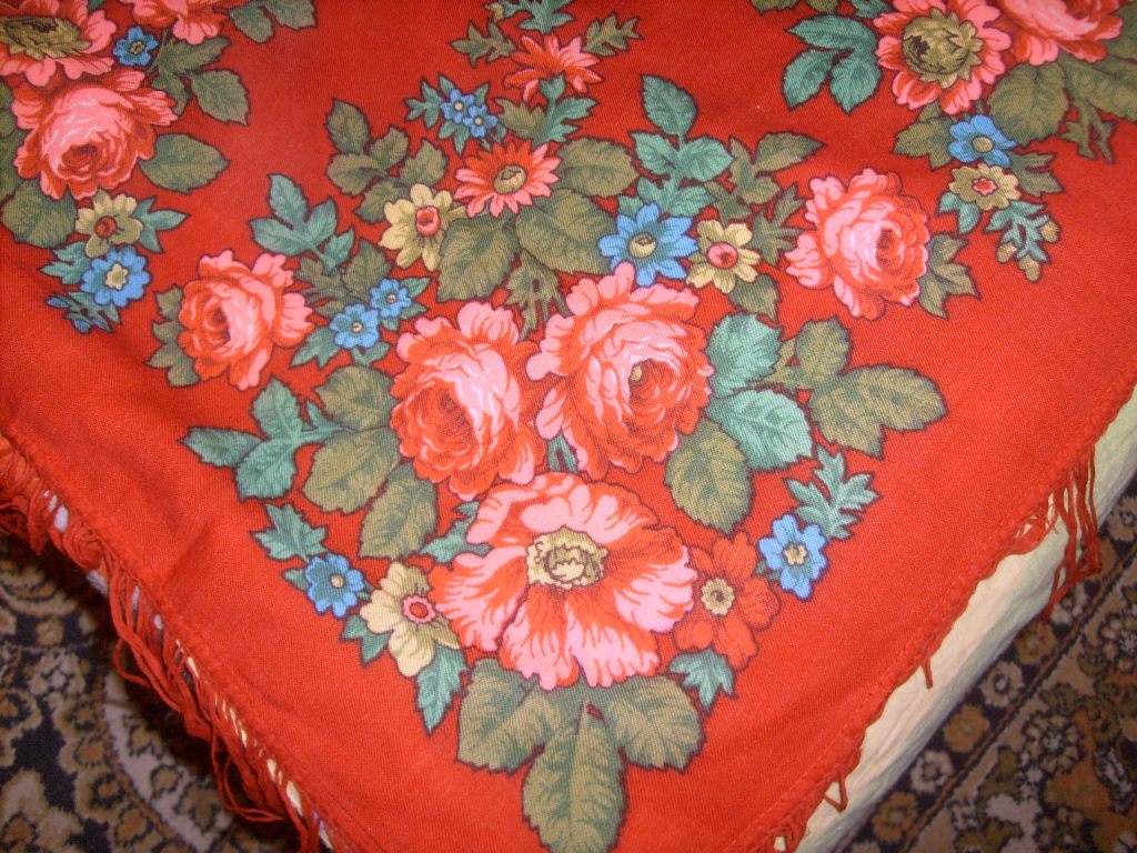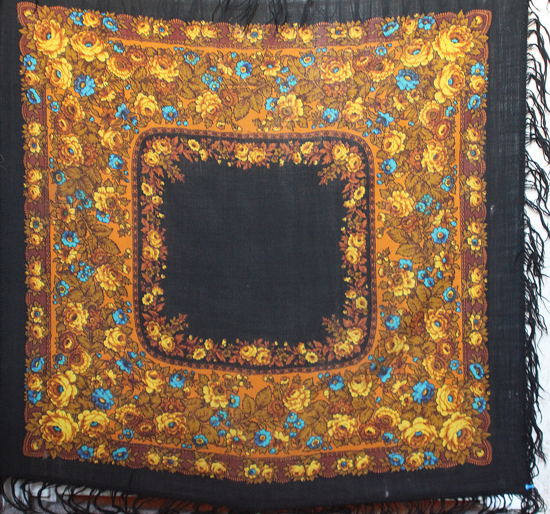 Подскажите, пожалуйста, что это за платок.Был подарен в начале 2000-х годов, достался от бабушки. Размер 90*90см.(может подсел?)