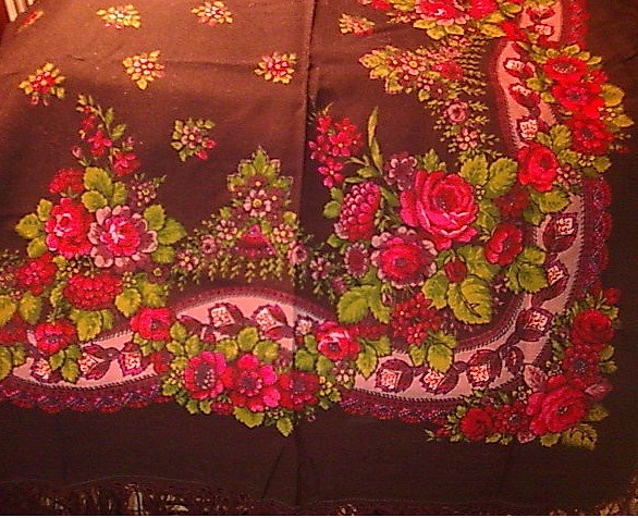 Буду очень благодарна, если кто то подскажет, был ли уже подобный платок (в базе неопознанных его вроде нет). Куплен в свое время вроде как павловопосадский (по крайней мере так утверждает моя мама )). Спасибо.