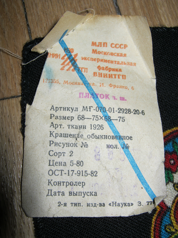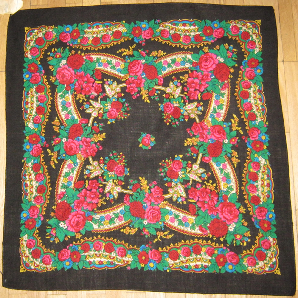 Этот может и не павлово-посадским быть. У меня есть старый маленький платок с очень похожим узором, с этикеткой "Московская экспериментальная фабрика ВНИИ.. (чего-то там)". Но был похожий узор и у павлово-посадского платка, насколько мне известно.