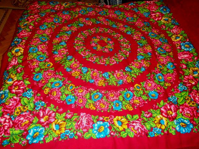 Мне кажется, что алый цвет во всех колоритах художником был выбран целенаправленно. В целом шаль производит очень теплые впечатления, не отталкивает.