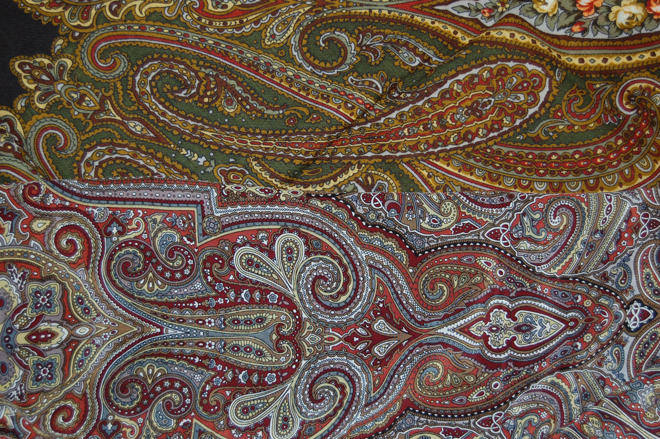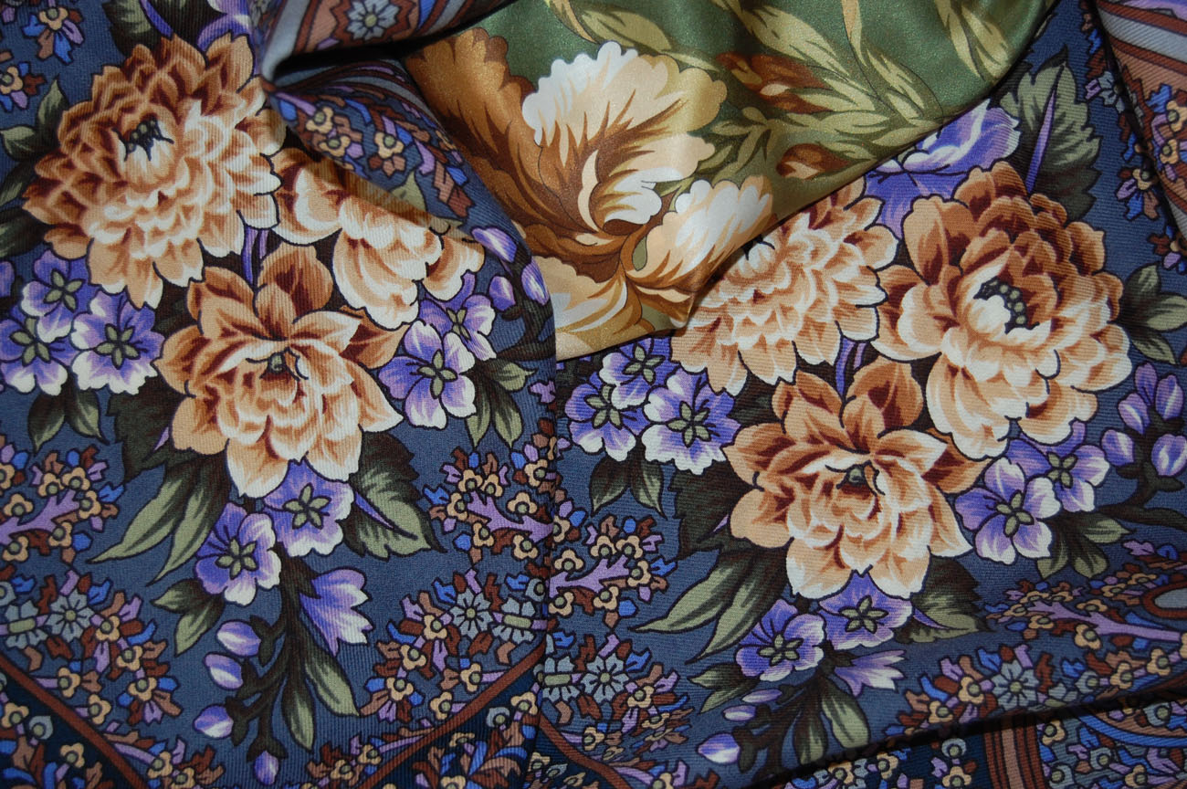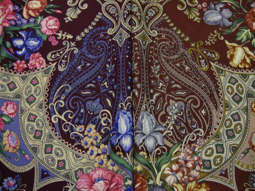 Я все смотрю на Княжеский коричневый и думаю...Если б сделали ирисы фиолетовыми, как в жизни, совсем по другому платок смотрелся бы, более сбалансированно. А с серыми ирисами грустно...