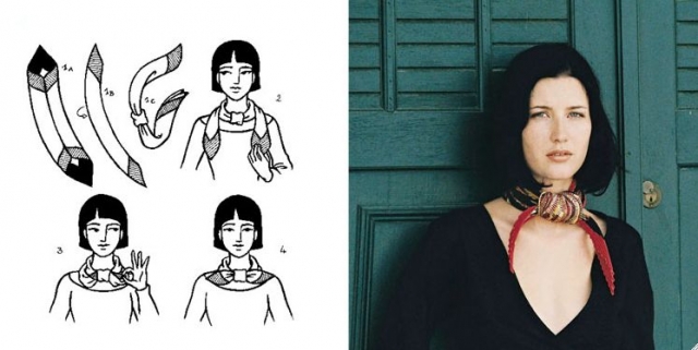 Шелк в основном завязываю тремя способами. Шерстяной платок на улице на голове, а в помещении - способом, который показала Eva ^% ^% ^%