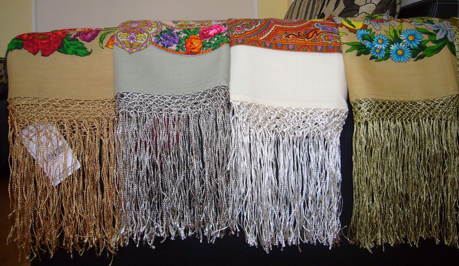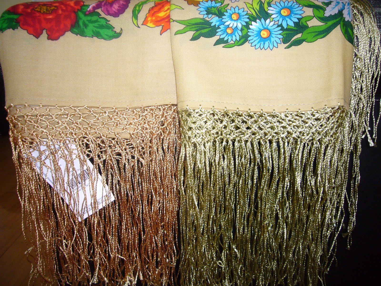 PS Судя по моему монитору, на золотистом Русском узоре бахрома тоже зеленоватая - и вроде это неплохо))).