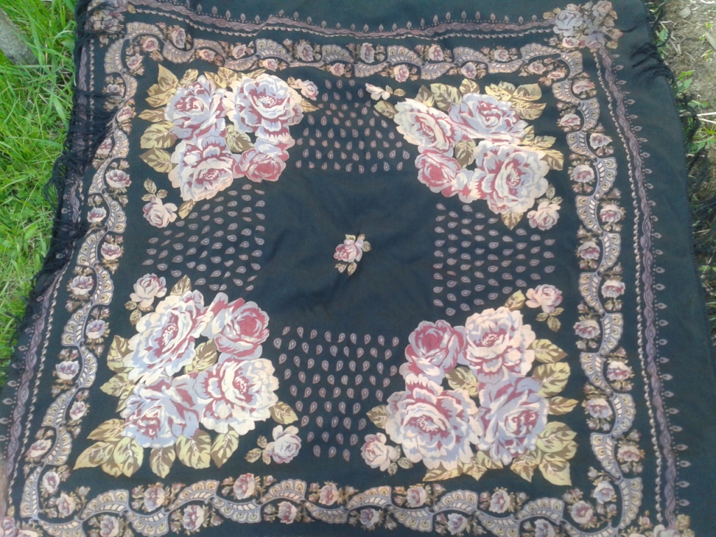 Добрый день! Давно уже лежит у нас дома старый платочек, но почему-то только сейчас решила поискать его в БС. Не нашла. Не знаю посадский ли, не знаю даже примерный возраст. Размеры (с учетом размохрившихся краев) примерно 100 на 98 см. Шерсть. Сильно пожелтел и очень пострадал от моли. Павловопосадский ли? Просмотрела может я его?